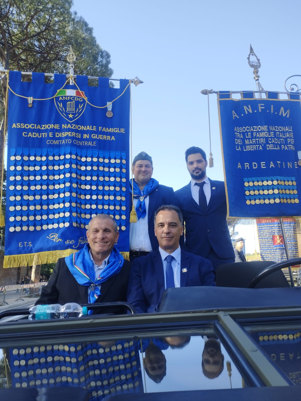 3 giugno 2025. Ieri, in occasione della tradizionale parata che si è tenuta a Roma nel giorno della Festa della Repubblica alla presenza del Presidente della Repubblica Sergio Mattarella e delle alte cariche dello Stato, il Consigliere nazionale Paolo Giammei e il figlio Marco, in qualità di Alfiere, hanno sfilato con lo stendardo dell’ANFIM.